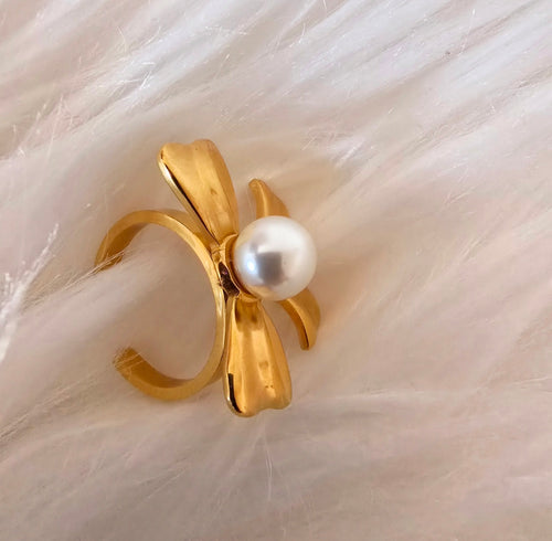 Bague en acier inoxydable avec perle élégante - Taille ajustable