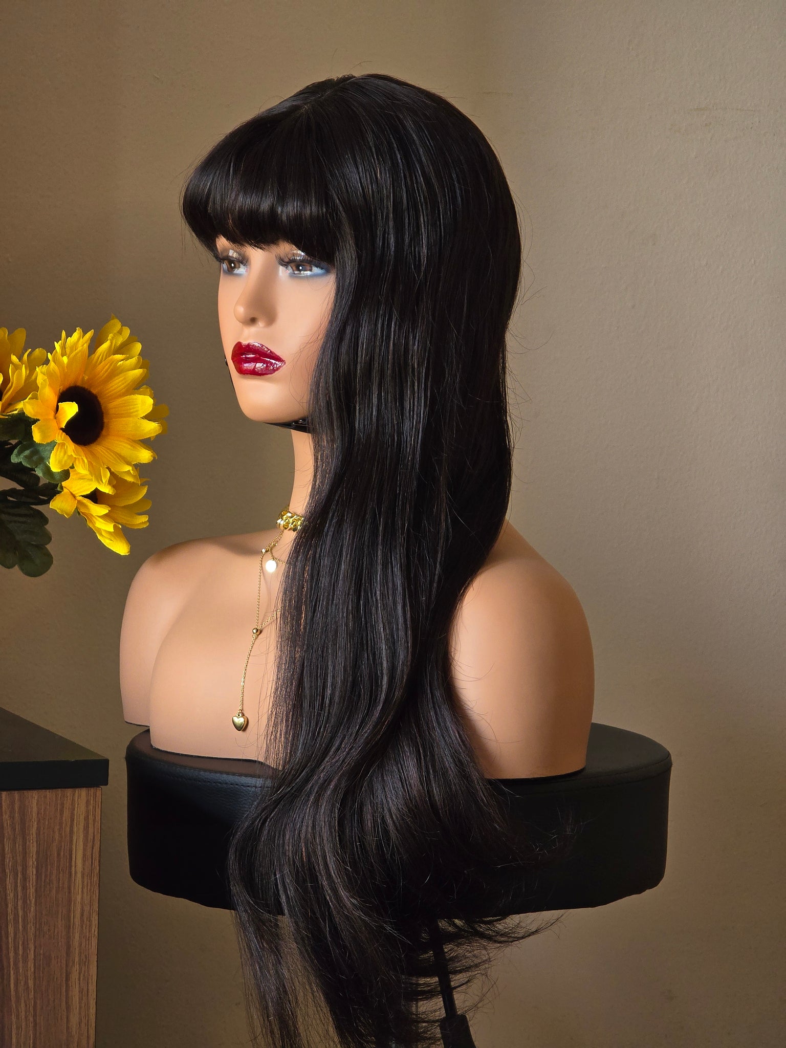 No=13 _ Perruque Naturelle Noire avec Frange – Cheveux Brésiliens| 180 % Densité | 24 Pouces