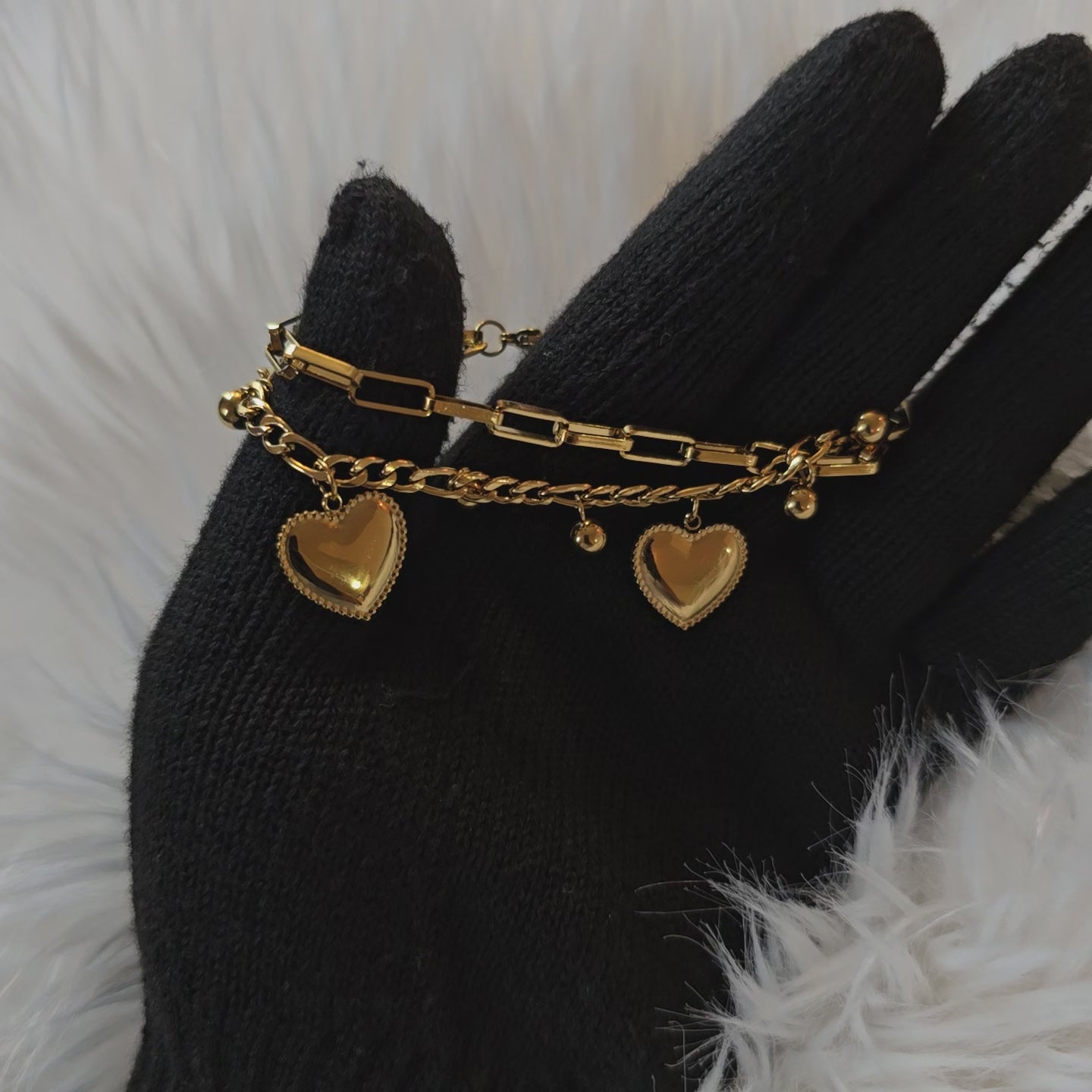 Ce bracelet élégant en acier inoxydable allie modernité et romantisme, parfait pour celles qui souhaitent ajouter une touche de douceur à leur look quotidien. Son design met en avant des pendentifs en forme coeur.
