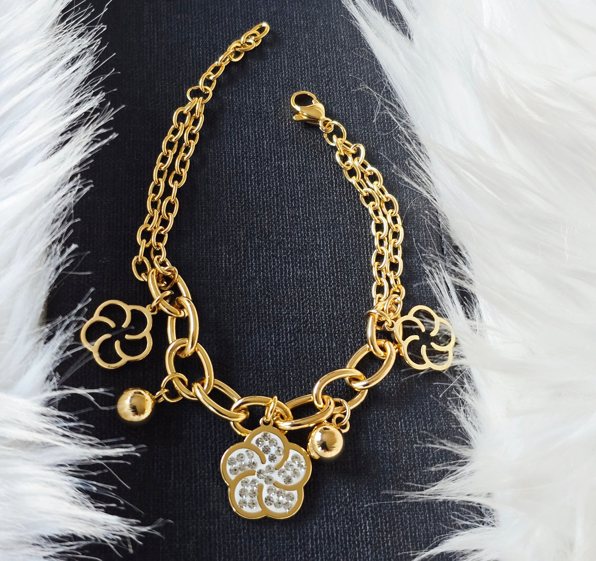 Bracelet en acier inoxydable plaqué 18K avec pendentifs